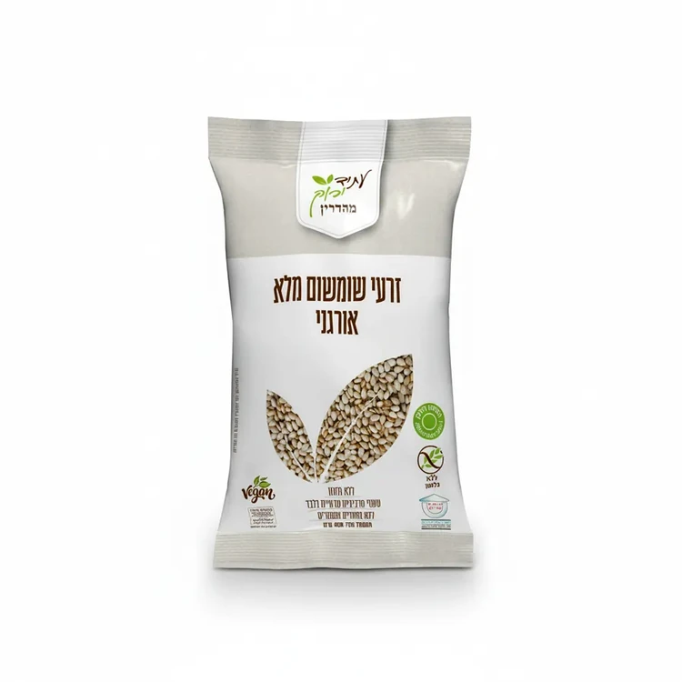 זרעי שומשום מלאים אורגניים, המתאימים לשימושים מגוונים במטבח, כגון תוספת לסלטים, מאפים ומנות שונות. המוצר מגיע באריזת 400 גרם, ומיוצר בתנאים אורגניים וללא גלוטן.