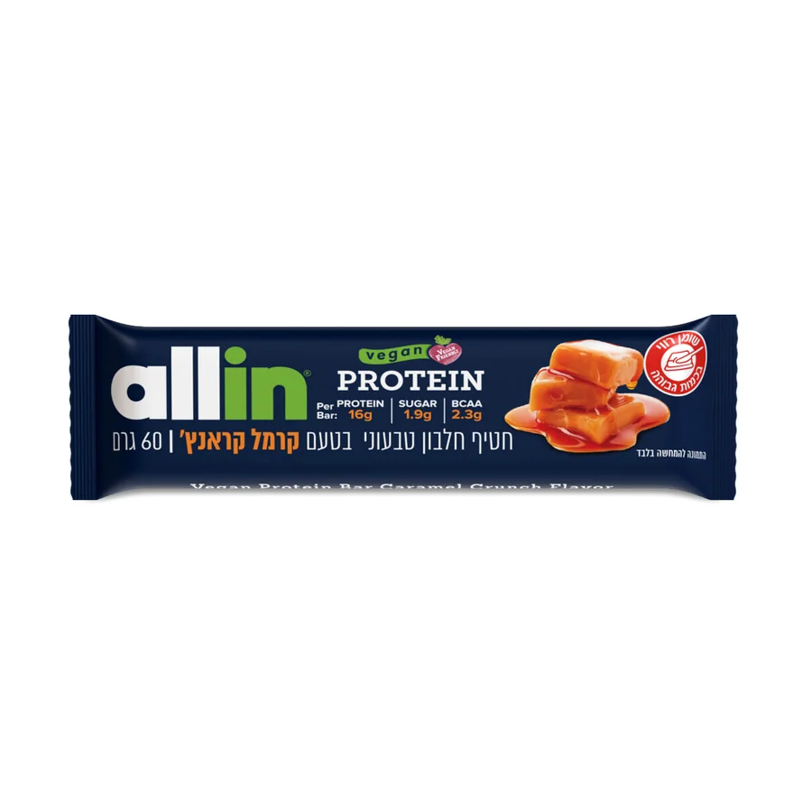 חטיף חלבון טבעוני בטעם קרמל קראנץ' | 60 גרם | אול אין