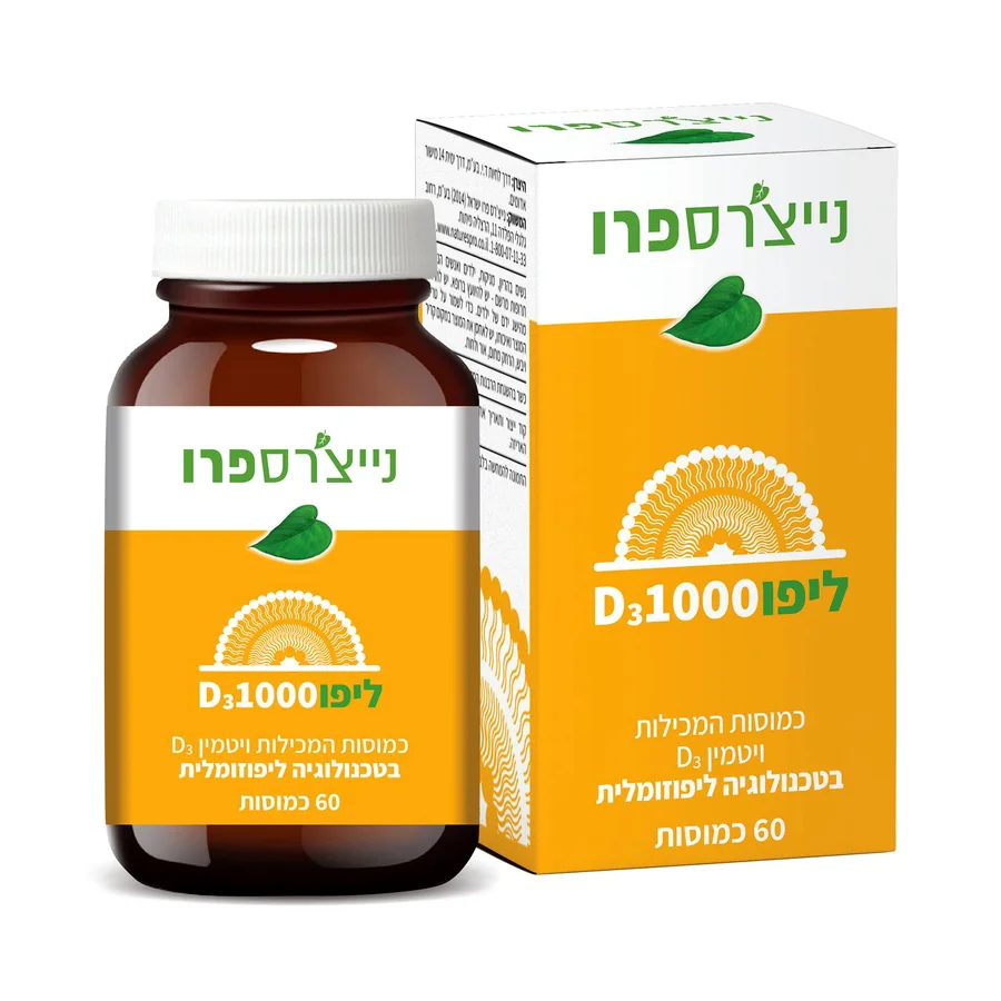 ליפו די 1000 של נייצ'רספרו הוא תוסף תזונה המכיל ויטמין D3 במינון של 1000 יחידות בינלאומיות (IU) לכל כמוסה. ויטמין D3 תומך במערכת החיסון, בבריאות העצמות ובספיגת הסידן.