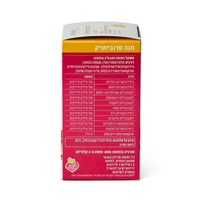 - מגה פרוביוטיק מכיל ריכוז גבוה במיוחד של 7.5 מיליארד חיידקים פרוביוטים מ10 זנים שונים