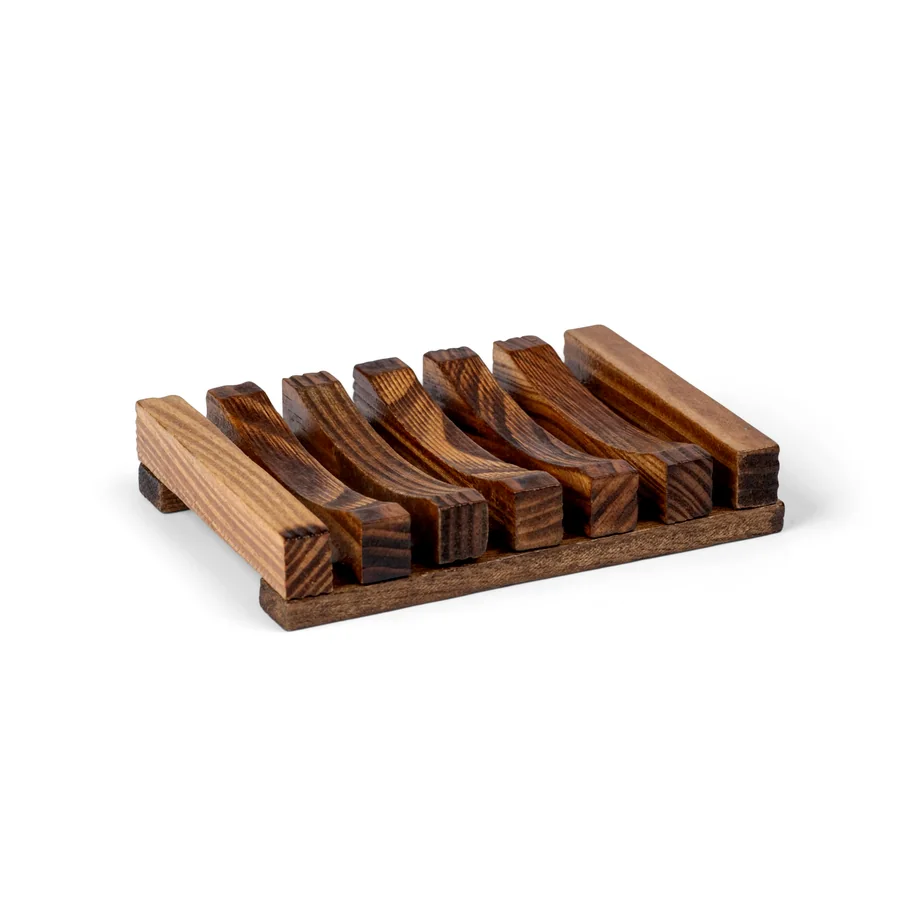 סבוניה מעוצבת מעץ כהה בסגנון כפרי, המיועדת לשמירה על הסבון ולהארכת חייו. הסבוניה עשויה מעץ איכותי, בעלת עיצוב טבעי המוסיף חמימות ואותנטיות לכל חדר רחצה. המבנה שלה מאפשר ניקוז מים יעיל, מה שמונע הצטברות נוזלים ושומר על הסבון יבש בין השימושים. בנוסף, הסבוניה ידידותית לסביבה, עשויה מחומרים טבעיים ומתכלים, ומסייעת בשמירה על איכות הסביבה.