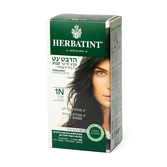 ערכת צבע לשיער גוון 1N שחור, 150 מ"ל, הרבטינט HERBATINT