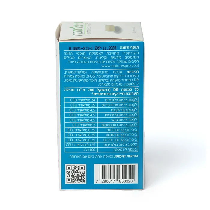 כל כמוסת DR (במשקל 720 מ"ג) מכילה תערובת חיידקים ידידותיים: