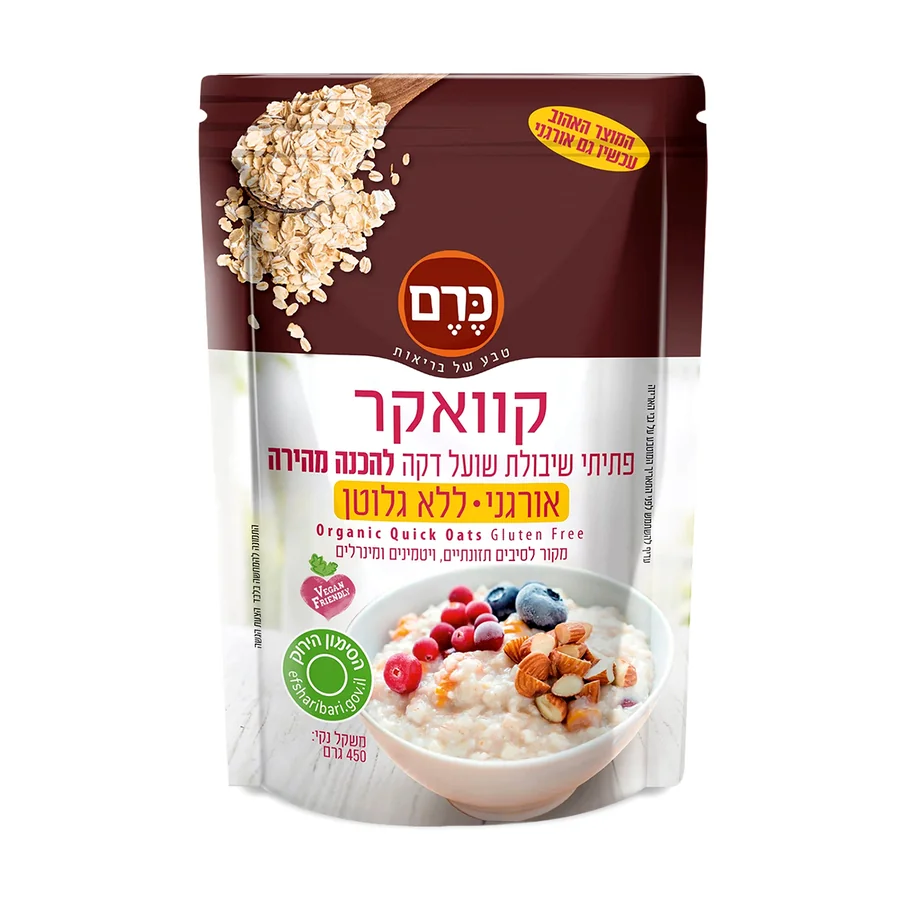 קוואקר דק אורגני ללא גלוטן | 450 גרם | כרם