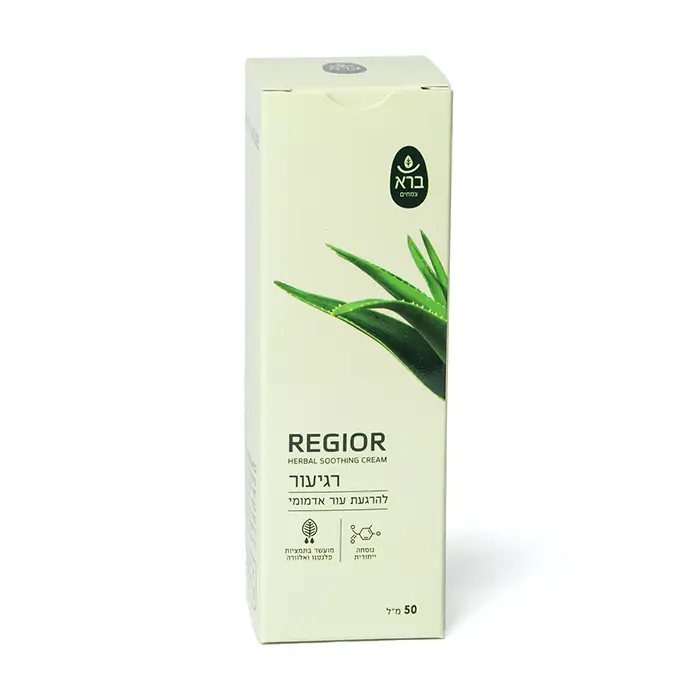 תחליב עדין להרגעת העור מועשר בתמציות צמחים. מיוצר בנוסחה ייחודית הכוללת: תמצית פרחי קמומיל (המופקת ללא שימוש בממסים), תמצית לחך אזמלני (Plantago) ופנים העלה הבשרני של צמח האלוורה. תמציות הצמחים פועלות במשולב להעשרת העור בלחות לאורך זמן, מסייעות בהפחתת אדמומיות בעור, מעניקות תחושת צינון לעור במריחה וכן מעניקות לקרם ניחוח עדין. קרם רגיעור מועשר בשמנים איכותיים (סקוואלן וטריגליצרידים) שתפקידם להאט את קצב התנדפות המים מהתכשיר על מנת להאריך את השפעתו המרגיעה. כמו כן, נוסחת הקרם כוללת רכיבי תה ירוק וויטמין E השומרים על איכות הרכיבים בקרם וכן מסייעים לעור להתגונן מפני נזקי רדיקלים חופשיים.