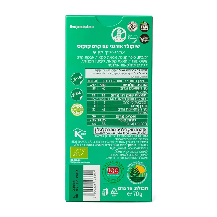 עמוד הבית / שוקולד חטיפים ודגני בוקר / שוקולד אורגני עם קרם קוקוס | 70 גרם | בניג'מיסימו שוקולד אורגני עם קרם קוקוס | 70 גרם | בניג'מיסימו עד 3 תשלומים משלוח עד הבית רכישה מאובטחת ₪20.90 מחיר ליח' כמות: המלאי אזל תיאור מוצר שוקולד אורגני עם קרם קוקוס | 70 גרם | בניג'מיסימו ₪20.90 מחיר ליח' עד 3 תשלומים משלוח עד הבית רכישה מאובטחת המלאי אזל תיאור מוצר מידע נוסף ערכים תזונתיים רכיבים אופן צריכה רגישויות ואלרגנים כשרות במיוחד בשבילך מרציפן נטו | 75 גרם | שקד תבור מחיר: ₪10.90 + כמות של מרציפן נטו | 75 גרם | שקד תבור + חטיף בננות מיובש בהקפאה | 20 גרם | פרי פריי מחיר: ₪10.90 + כמות של חטיף בננות מיובש בהקפאה | 20 גרם | פרי פריי + חטיף תמרים במילוי חמאת קשיו מצופה שוקולד | 6*25 גרם | שקד תבור מחיר: ₪19.90 + כמות של חטיף תמרים במילוי חמאת קשיו מצופה שוקולד | 6*25 גרם | שקד תבור + חטיף חלבון בטעם וניל וקפה | 60 גרם | פנגיאה מחיר: ₪9.90 + כמות של חטיף חלבון בטעם וניל וקפה | 60 גרם | פנגיאה + מרציפן נטו ללא תוספת סוכר | 6*30 גרם | שקד תבור מחיר: ₪29.90 + כמות של מרציפן נטו ללא תוספת סוכר | 6*30 גרם | שקד תבור + חטיף דגנים תמר וקינמון | 5*22 גרם | פרי מחיר: ₪16.90 + כמות של חטיף דגנים תמר וקינמון | 5*22 גרם | פרי + סמוצ'י פירות אדומים אורגני | 100 גרם | נטורה נובה מחיר: ₪5.50 + כמות של סמוצ'י פירות אדומים אורגני | 100 גרם | נטורה נובה + שוקולד חלב ללא סוכר ללא גלוטן | 100 גרם | בלג'יאן מחיר: ₪26.00 + כמות של שוקולד חלב ללא סוכר ללא גלוטן | 100 גרם | בלג'יאן + חטיף קינואה טחינה ואגוזים | 30 גרם | ממה מחיר: ₪8.90 + כמות של חטיף קינואה טחינה ואגוזים | 30 גרם | ממה + מעדן סויה בטעם וניל | 500 גרם | אלפרו מחיר: ₪17.90 + כמות של מעדן סויה בטעם וניל | 500 גרם | אלפרו + חטיף תמרים חמוציות ואגוזי לוז | 50 גרם | ממה מחיר: ₪9.90 + כמות של חטיף תמרים חמוציות ואגוזי לוז | 50 גרם | ממה + חלווה עם פיסטוק ללא תוספת סוכר | 400 גרם | היילה מחיר: ₪32.90 + כמות של חלווה עם פיסטוק ללא תוספת סוכר | 400 גרם | היילה + סמוצ'י תפוח תות בננה אורגני | 100 גרם | נטורה נובה מחיר: ₪5.50 + כמות של סמוצ'י תפוח תות בננה אורגני | 100 גרם | נטורה נובה + מטריות חרובים בטעם שוקולד | 54 גרם | תופינית מחיר: ₪15.90 + כמות של מטריות חרובים בטעם שוקולד | 54 גרם | תופינית + סמוצ'י תפוחים אורגני | 100 גרם | נטורה נובה מחיר: ₪5.50 + כמות של סמוצ'י תפוחים אורגני | 100 גרם | נטורה נובה + חטיף חלבון בטעם קרמל מלוח | 60 גרם | פנגיאה מחיר: ₪9.90 + כמות של חטיף חלבון בטעם קרמל מלוח | 60 גרם | פנגיאה + עכשיו במבצע ספירולינה 5 | 60 כמוסות | ברא צמחים מחיר: ₪89.90 המחיר המקורי היה: ₪89.90.₪69.00המחיר הנוכחי הוא: ₪69.00. + כמות של ספירולינה 5 | 60 כמוסות | ברא צמחים + ליקוריץ גלברידין | 60 כמוסות | ברא צמחים מחיר: ₪139.90 המחיר המקורי היה: ₪139.90.₪109.90המחיר הנוכחי הוא: ₪109.90. + כמות של ליקוריץ גלברידין | 60 כמוסות | ברא צמחים + קאנג נינג וואן סדרת פנדה | 50 מ"ל | ברא צמחים מחיר: ₪105.00 המחיר המקורי היה: ₪105.00.₪83.00המחיר הנוכחי הוא: ₪83.00. + כמות של קאנג נינג וואן סדרת פנדה | 50 מ"ל | ברא צמחים + ברא חמוציות פלוס | 60 כמוסות | ברא מחיר: ₪149.90 המחיר המקורי היה: ₪149.90.₪126.00המחיר הנוכחי הוא: ₪126.00. + כמות של ברא חמוציות פלוס | 60 כמוסות | ברא + קולגן קומפלקס | 60 טבליות | סופהרב מחיר: ₪95.00 המחיר המקורי היה: ₪95.00.₪77.00המחיר הנוכחי הוא: ₪77.00. + כמות של קולגן קומפלקס | 60 טבליות | סופהרב + רעמת האריה | 60 כמוסות | ברא מחיר: ₪135.00 המחיר המקורי היה: ₪135.00.₪109.90המחיר הנוכחי הוא: ₪109.90. + כמות של רעמת האריה | 60 כמוסות | ברא + סייקלפרו | 60 כמוסות | נייצ'רספרו מחיר: ₪139.90 המחיר המקורי היה: ₪139.90.₪120.00המחיר הנוכחי הוא: ₪120.00. + כמות של סייקלפרו | 60 כמוסות | נייצ'רספרו + אורגנואויל | 50 מ"ל | נייצ'רספרו מחיר: ₪115.00 המחיר המקורי היה: ₪115.00.₪93.00המחיר הנוכחי הוא: ₪93.00. + כמות של אורגנואויל | 50 מ"ל | נייצ'רספרו + קומפלקס מס' 7 | 30 כמוסות | סולגאר מחיר: ₪119.90 המחיר המקורי היה: ₪119.90.₪109.90המחיר הנוכחי הוא: ₪109.90. + כמות של קומפלקס מ